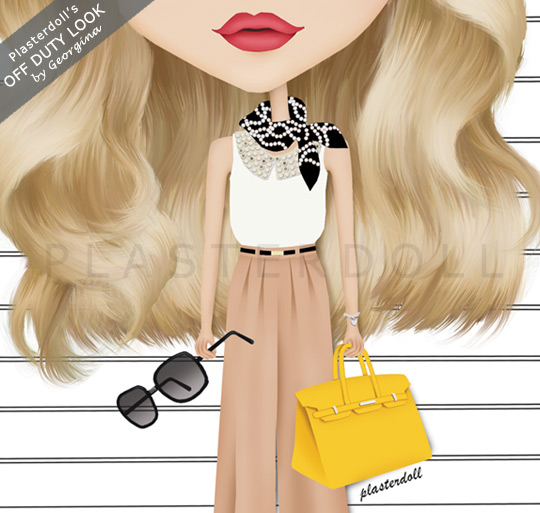 This swarovski crystal-embellished silk top from Chloé belongs to me actually ;), I wore it some time ago if you remember. And I super-love Georgina’s Tiffany pearls scarf!